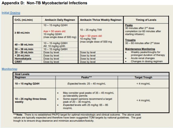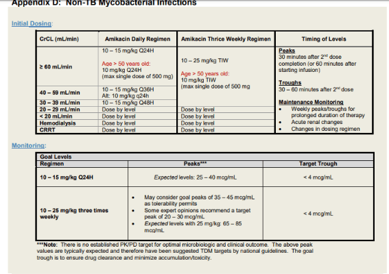For patient with higher amikacin MIC, discussion case by case as a team for target peaks