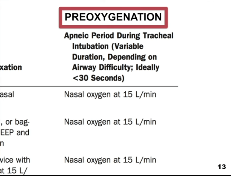 - P {{c6::Pre-oxygenation}} — {{c6::15 L/min NRBM}}