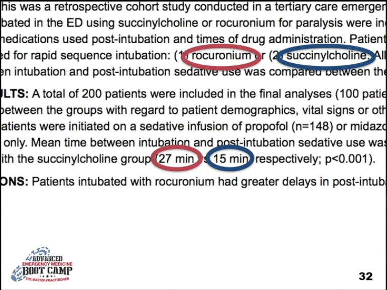 Watt JM, Amini A, Traylor BR, Amini R, Sakles JC, Patanwala AE. Effect of paralytic type on time to post-intubation sedative use in the emergency department. Emerg Med J. 2013 Nov;30(11):893-5. doi: 10.1136/emermed-2012-201812. Epub 2012 Nov 8. PMID: 23139098.